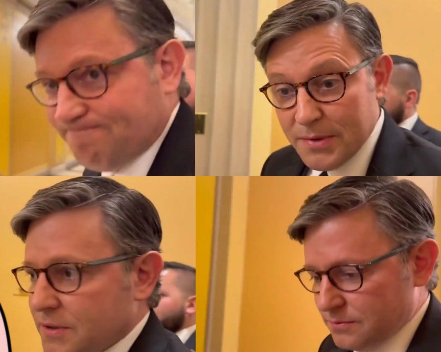 Lo, Mike Johnson looked absolutely rattled following the quick passing of the Epstein files through the Senate yesterday. Verily, his anguished face-journey thoroughly delighted the LORD thy God.