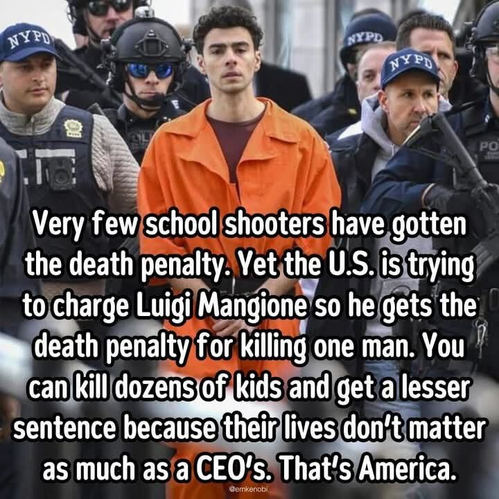 The murderer of the UHC CEO is being held to a higher standard than the murderers of children in schools and regular (i.e. not wealthy) people from mass shootings.