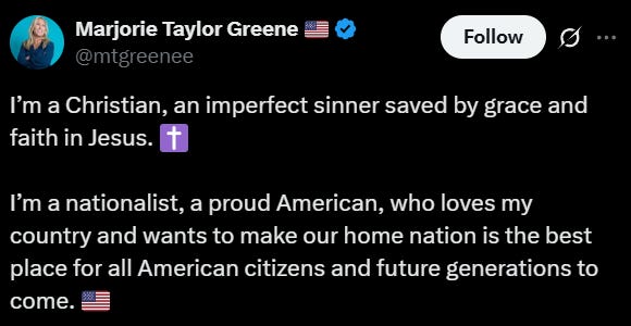 It all began when MTG posted one of her usual “I’m a Christian nationalist” rants on Elon Musk’s platform.