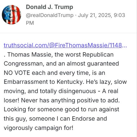 Trump is lashing out at Rep. Thomas Massie, one of the only Republicans demanding the files be released.