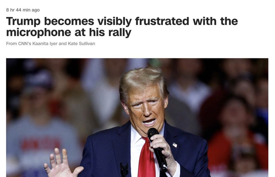 How did the corporate media cover Donold sexually assaulting his microphone? They totally sane-washed it, of course, because their billionaire owners very clearly want him to win.