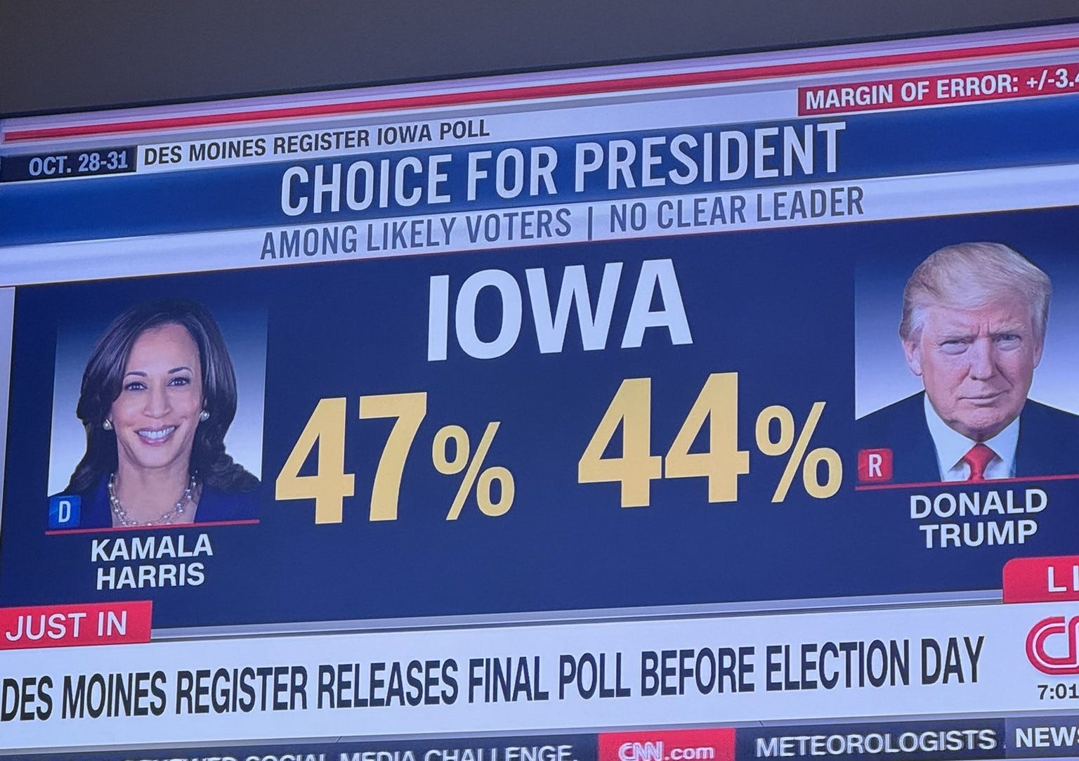 For one thing, Kamala hath now LEPT AHEAD of Donold in IOWA! That’s a state Donold previously won twice. No one saw this coming, and it’s because women are shifting heavily towards Kamala.