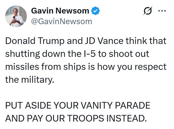 Governor Newsom called it exactly what it is: a vanity parade.