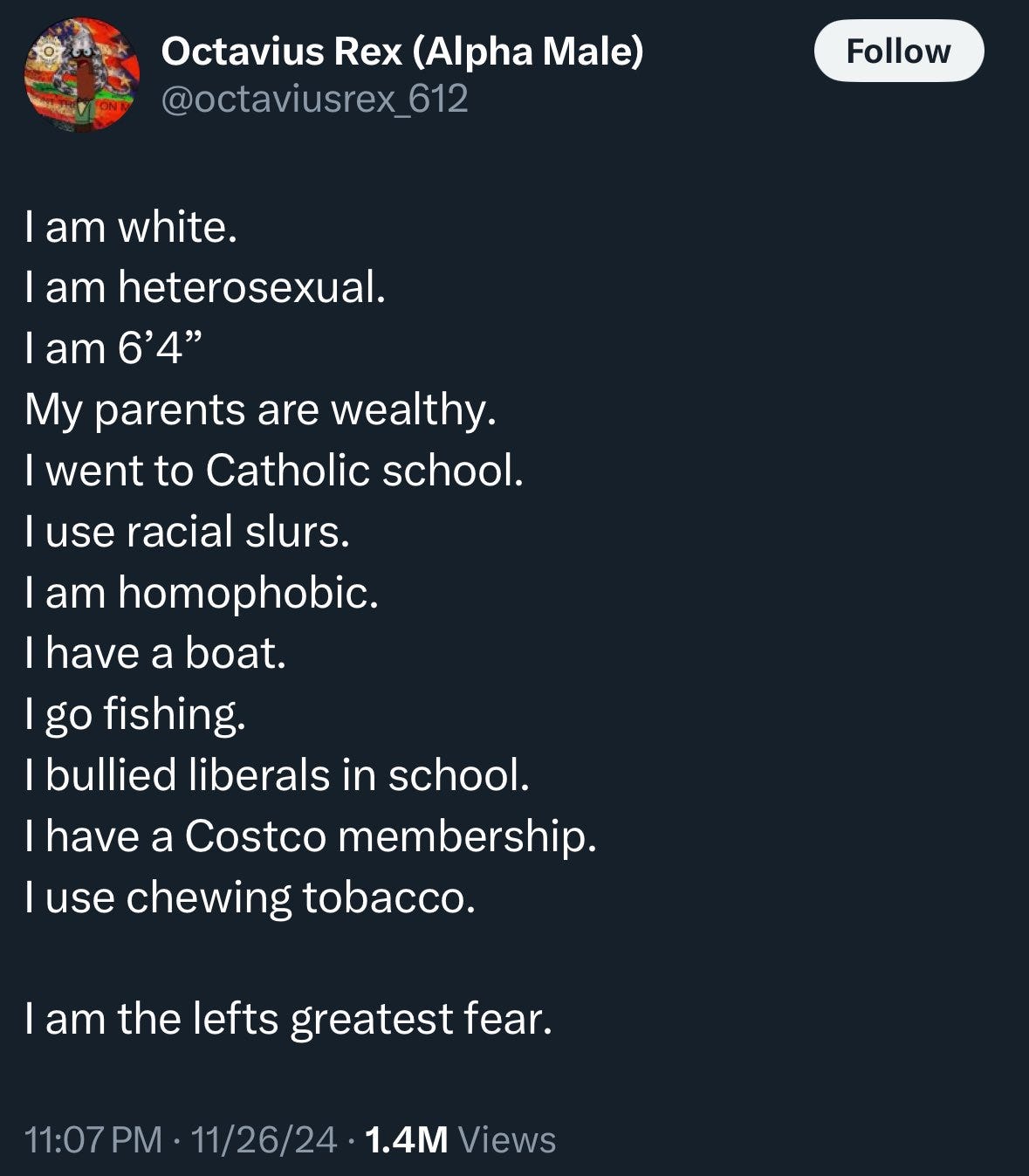 Not sure where to begin with this ‘alpha male,’ but a few items stick out.