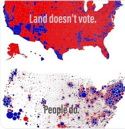 Also, let’s talk about that electoral map MAGA loves so much. It’s the same distorted nonsense they always post, pretending empty fields count as voters. Truly pathetic.