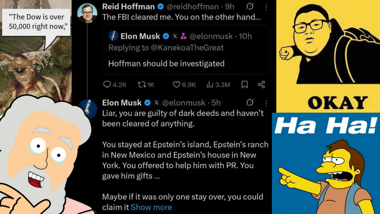 BEHOLD! Techno-fascist billionaires Elon Musk and Reid Hoffman are fighting with each other over who hung out with Jeffrey Epstein more. Grab your popcorn, mortals. The shit hath hit the fan.