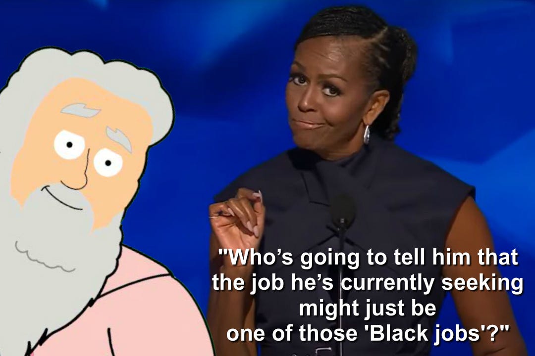 "Who’s going to tell him that the job he’s currently seeking might just be one of those 'Black jobs'?"