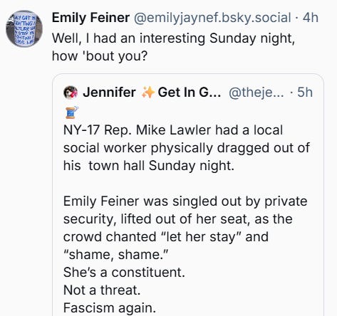 Her crime? Being a social worker and constituent who dared to ask a question to her Trump Republican Congressman, Mike Lawler.