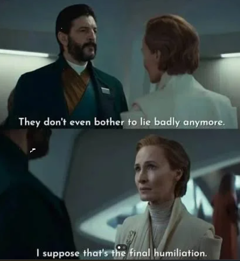 They don’t even bother to lie badly anymore. I suppose that’s the final humiliation.