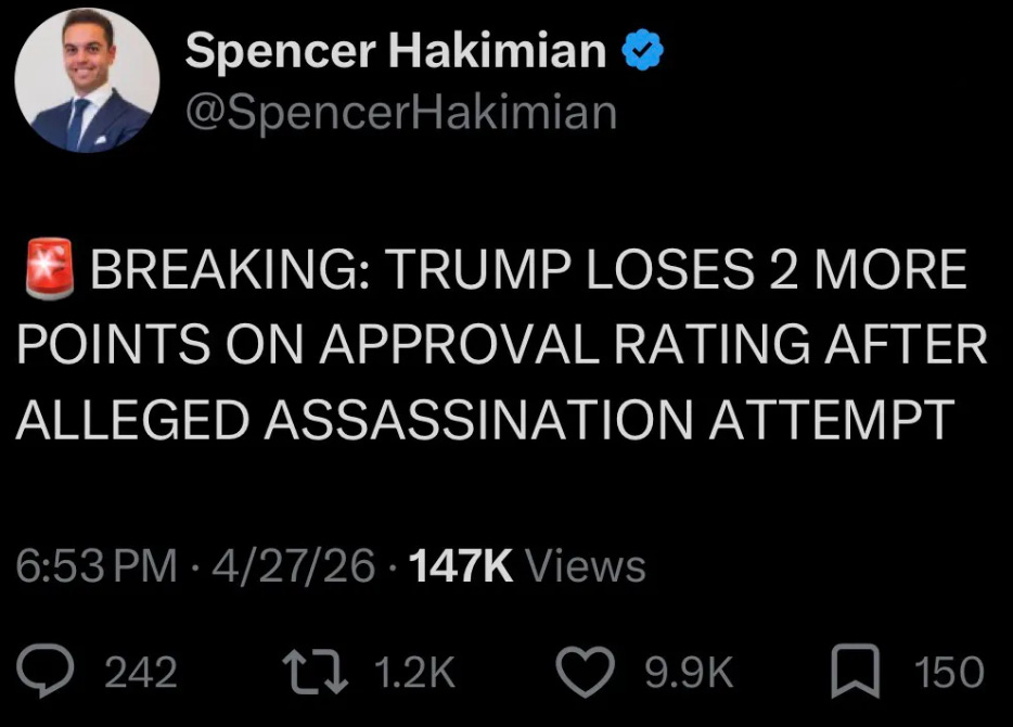 But Americans aren’t as stupid as we are led to believe. He’s already lost another 2 points on his approval rating since the alleged assassination attempt.