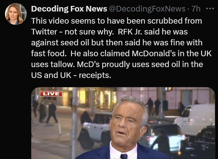 By the way, how the hell is RFK, Jr. supposedly “so pro-health” and against corporate food and he’s eating McDonald’s? Oh right, because they’re all completely full of shit.