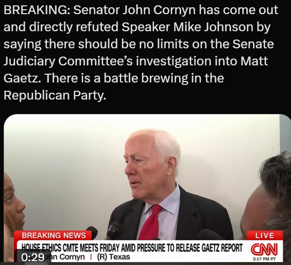 And let’s not forget that new Senate Majority Leader John Thune has been critical of Donold. Some people call him a ‘never trumper.’