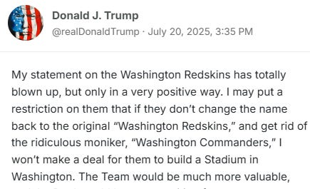 His panic is his confession. Here he is yesterday, giddy that he got people to talk about a football team’s name. Anything other than the fact he’s a huge pedophile.