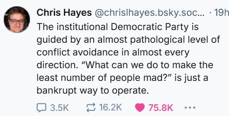 Chris Hayes put it bluntly: "What can we do to make the least number of people mad?” is just a bankrupt way to operate.”