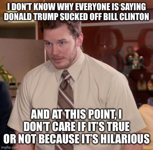 B) The Epstein emails mention Trump “blowing Bubba,” and the world still has no idea who Bubba is. Possibly Bill Clinton. Possibly Ghislaine Maxwell’s horse. Possibly a pig