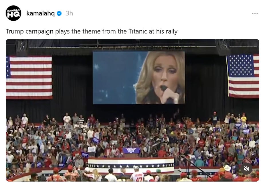 It’s truly delicious that the theme song used at Trump’s rally is the theme song from the Titanic movie! Are they foreseeing the future?