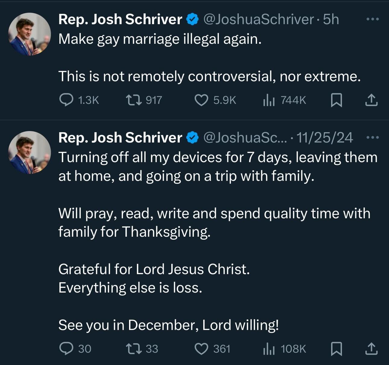 Meanwhile, Donold and his Project 2025 team want to roll back LGBTQ rights. Make it make sense.