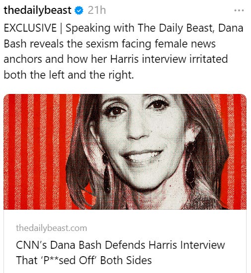 Dana Bash of CNN did a terrible job in her interview with Kamala Harris. Many of her questions were extremely stupid. She did something VERY RACIST by literally just repeating back Donold’s racist talking point to her, and treating it as a very serious allegation. She claims she had to ask that, as “the questions are the questions.” You decide what the questions are. That’s LITERALLY what being a journalist is.