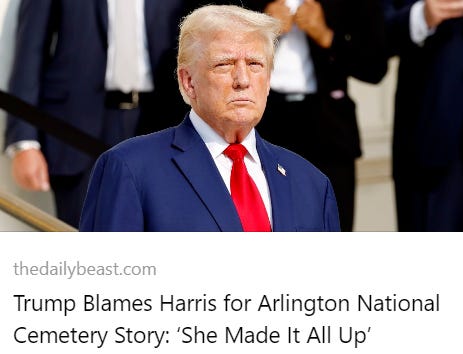 Let’s talk about the fallout from Donald’s offensive visit to Arlington National Cemetery. This is how it went: