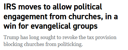 This is not a repeal of the Johnson Amendment, which has banned nonprofits from endorsing political candidates since 1954. That law still exists. The Trump controlled IRS just decided it doesn’t matter anymore.