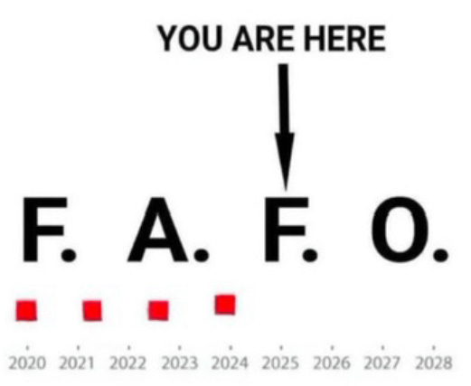 I think FAFO is the best acronym ever. I also think this is what it’s going to take to save our country. Enough people who voted for Trump to realize that what they were sold was not what they bought.