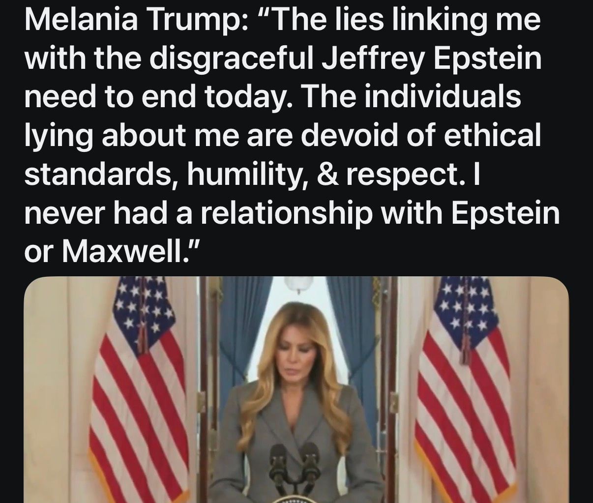 Melania suddenly and desperately denies any connection to Epstein in a very suspicious and White House address.