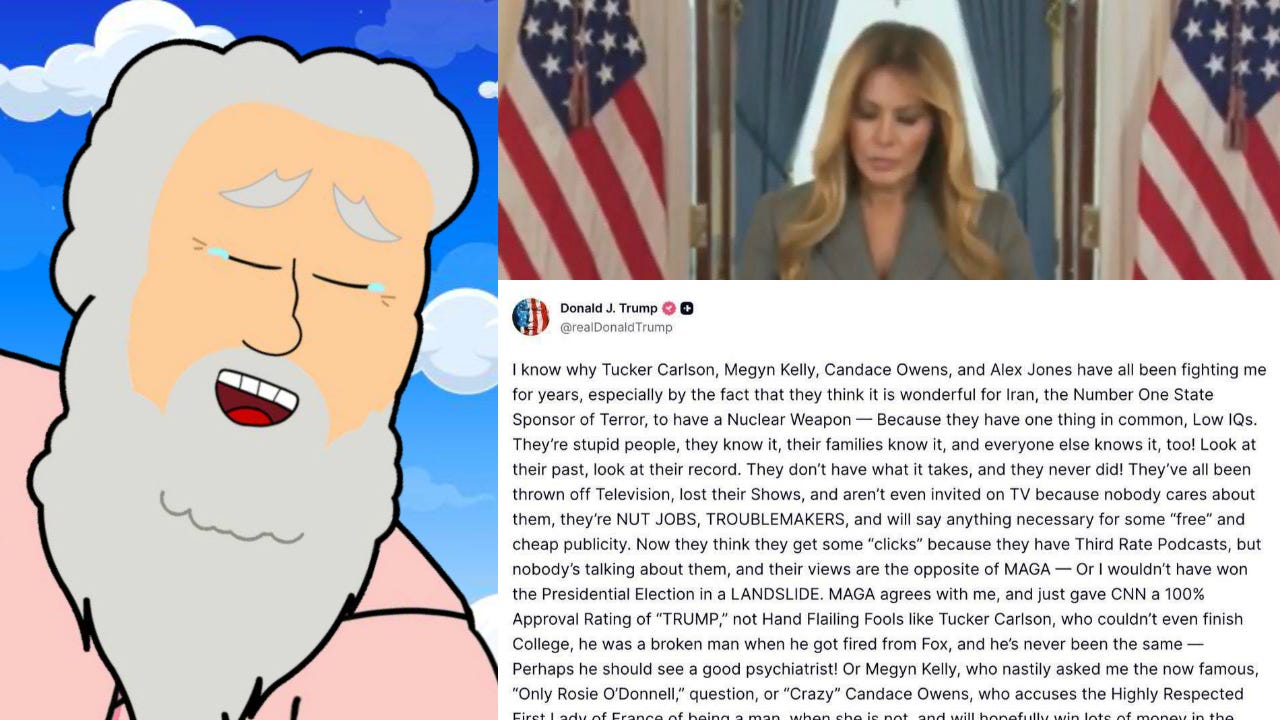 Trump makes his longest post ever, completely losing his shit on MAGA influencers Tucker Carlson, Candace Owens, and the rest, for no longer supporting either his dreams of world conquest or his lifelong pedophilia.