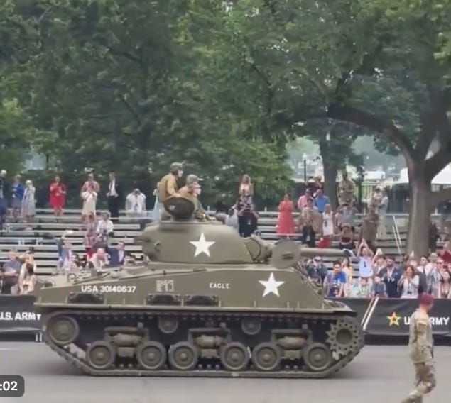 What he got instead was the limpest display of military might you’ve ever seen. One tank at a time, slowly and loudly squeaking down the road past empty bleachers of bored Americans.