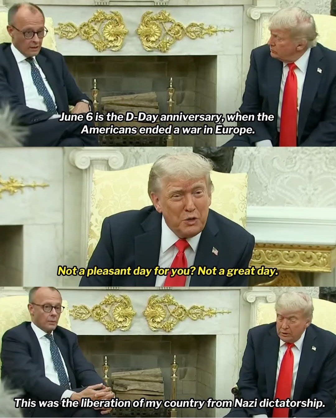 The Chancellor solemnly marked the anniversary of D-Day as the day Americans helped liberate Europe from Nazi rule.