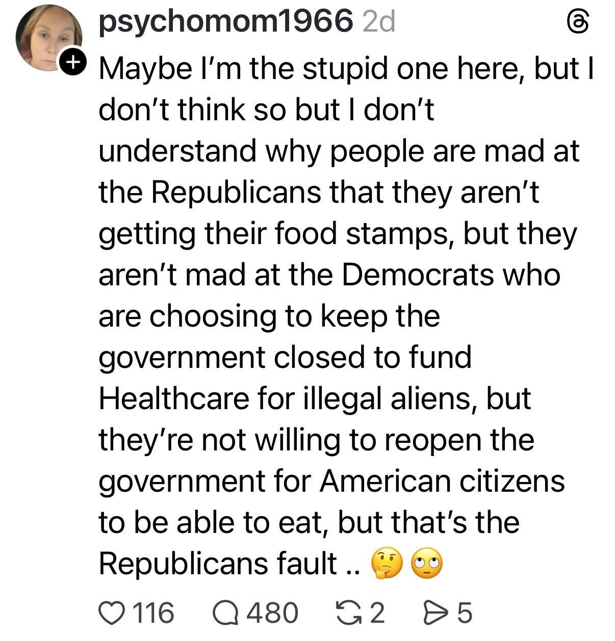 “Maybe I’m the stupid one here,” she said accurately, while defending the man who froze the SNAP program.