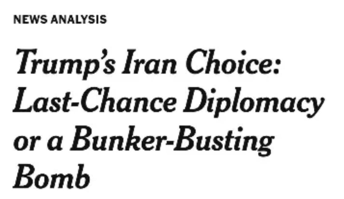 The New York Times headline literally said: “Last-chance diplomacy or bunker-buster bomb?”