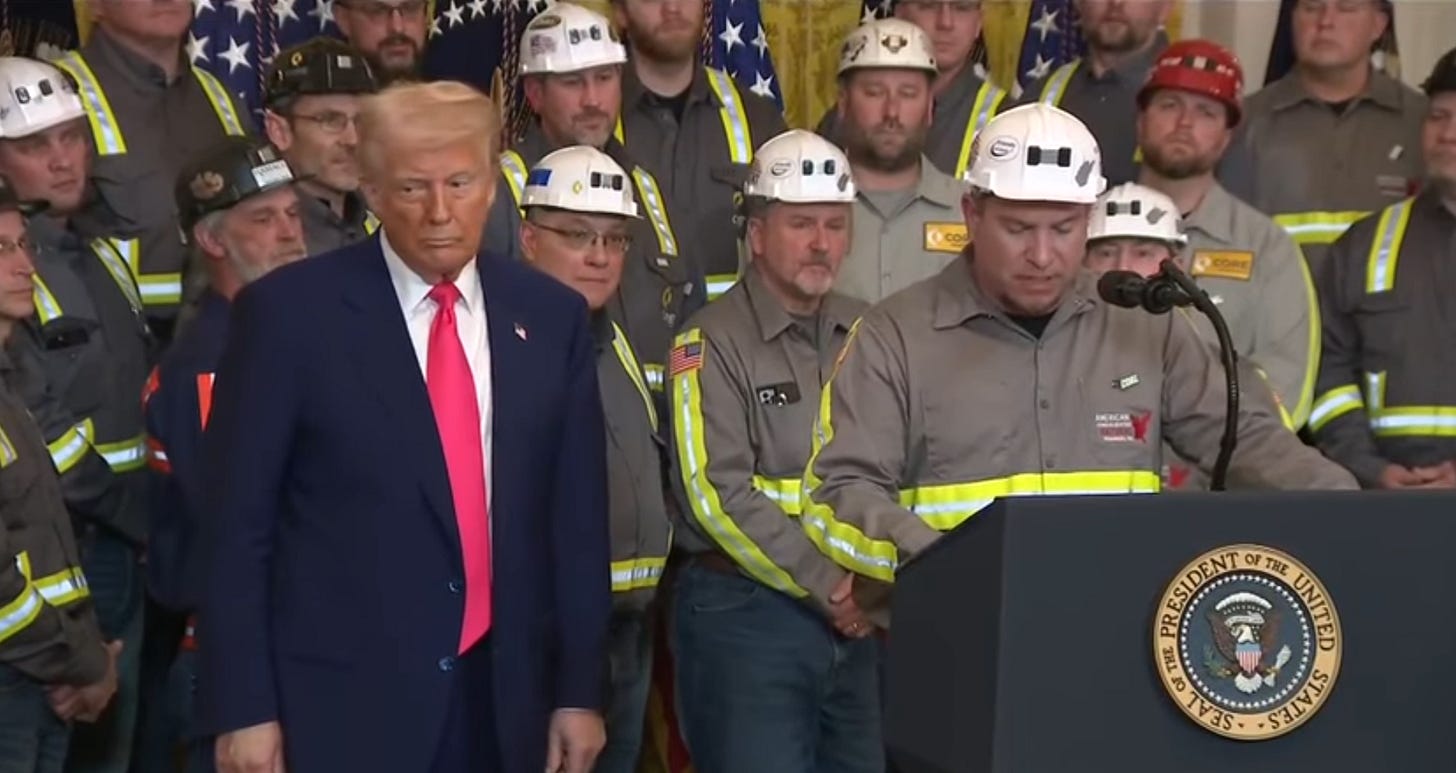 On April 8, 2025, he stood in the East Room announcing, “We’re bringing coal back,” surrounded by coal executives cosplaying as miners. What he really brought back was black lung disease.