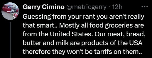 Someone needs to tell that person who claimed tariffs won't impact the price of food. That may be somewhat true. However - when the Orange Cult Leader deports all the folks who work picking crops or working in meat/dairy factories expect the price of food to skyrocket. LOL- "I voted for Trump because the price of eggs was high"