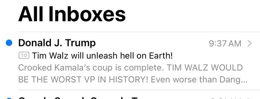 Donald is worried. Could it be because Tim Walz radiates positive energy and is beloved by children and animals? Nothing scares these sad weirdos more than the laughter and joy of good people like Kamala and Tim.