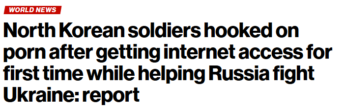 And when I say they came to the area…I mean it. Did you know the North Korean soldiers are all addicted to porn now? Having grown up in a fascist dictatorship, they never had Internet till they got to Ukraine.